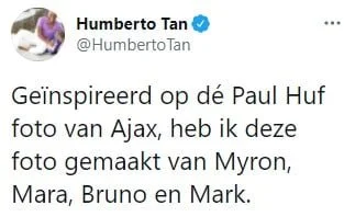Wel met oog voor detail dan, want Tan's team van stylisten heeft zelfs de moeite genomen om dezelfde outfits en schoenen op te snorren voor Tan's interpretatie. Tan's assistent heeft ook goed naar het lichtplan van Huf gekeken en erg zijn best gedaan deze precies zo neer te zetten voordat fotograaf Tan op het knopje mocht drukken.